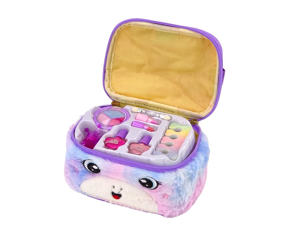 Kozmetická sada v rozkošnej kozmetickej taštičke je snom každej malej milovníčky líčenia a krásy. Kozmetická taštička vyrobená z mäkkého plyšového materiálu v pastelových ružových a modrých odtieňoch s motívom jednorožca je nielen praktickým, ale aj kúzelným miestom na uloženie kozmetiky.
