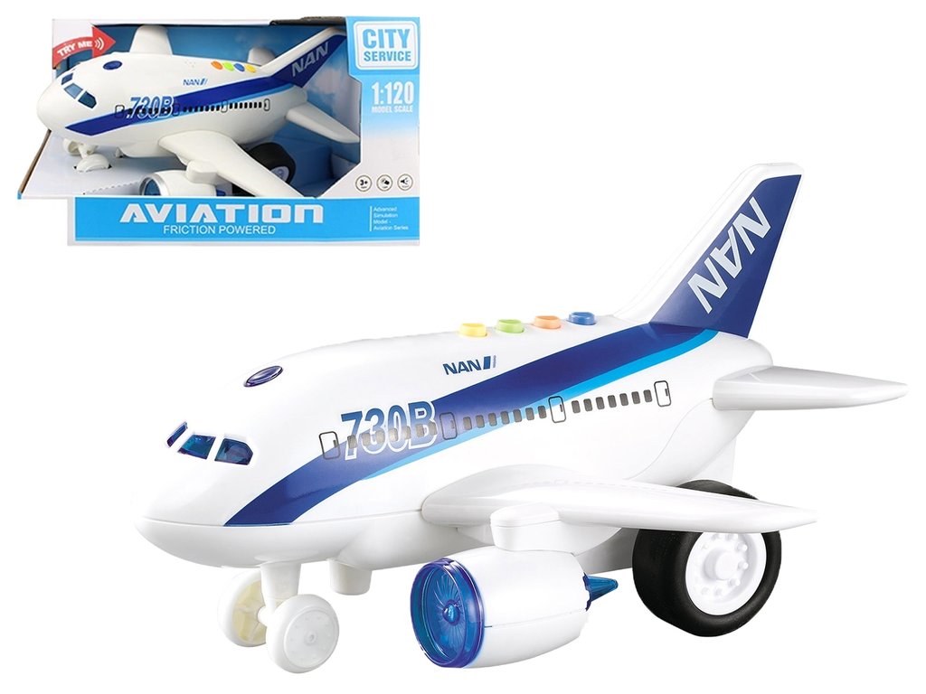 Detské lietadlo je vybavené štyrmi rôznymi tlačidlami , aktivujúcimi zaujímavé zvuky a svetlá. Po stlačení každého tlačidla dieťa začuje zvuky súvisiace s letectvom a tiež správu v angličtine, ktorá je kombinovaná s veľkolepým svetelným efektom. Hračka je vyrobená v mierke 1:120 , vďaka čomu vyzerá neuveriteľne reálne.