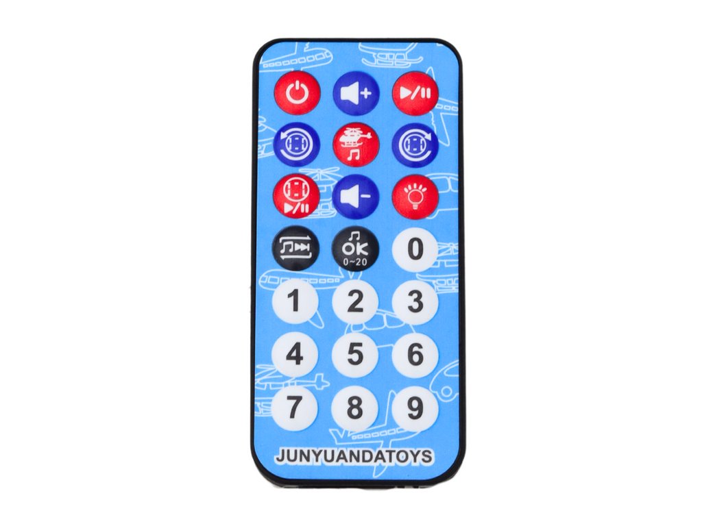 V balení sa nachádza diaľkový ovládač, ktorý umožňuje zapínanie a vypínanie vrtuľníka, zmenu svetiel a zvukov. Navyše sú na ovládači čísla od 1 do 9 v angličtine, čo umožňuje deťom hravou formou učiť sa číslice.