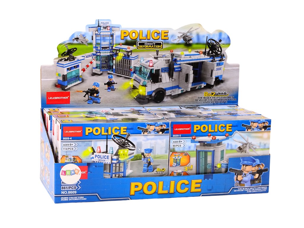 V jednom balení sa nachádza 8 rôznych vzorov. Každá sada je jednotlivo zabalená, čo uľahčuje skladovanie a organizáciu. Stavebnica rozvíja manuálne zručnosti, kreativitu a priestorovú predstavivosť detí. Tvorba modelov policajných vozidiel môže tiež pomôcť pochopiť úlohu a význam záchranných služieb.