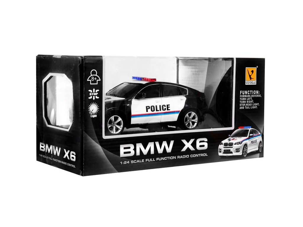 Autíčko na diaľkové ovládanie je licencovaný produkt spoločnosti BMW. Policajné autíčko BMW X6 je vyrobené v mierke 1:24 a má plne funkčné diaľkové ovládanie, ktoré pracuje na frekvencii 27MHz. Autíčko jazdí dopredu, dozadu a zatáča doľava a doprava. Počas jazdy autíčku svietia predné aj zadné svetlá. Autíčko má gumové pneumatiky a pohon zadných kolies.
