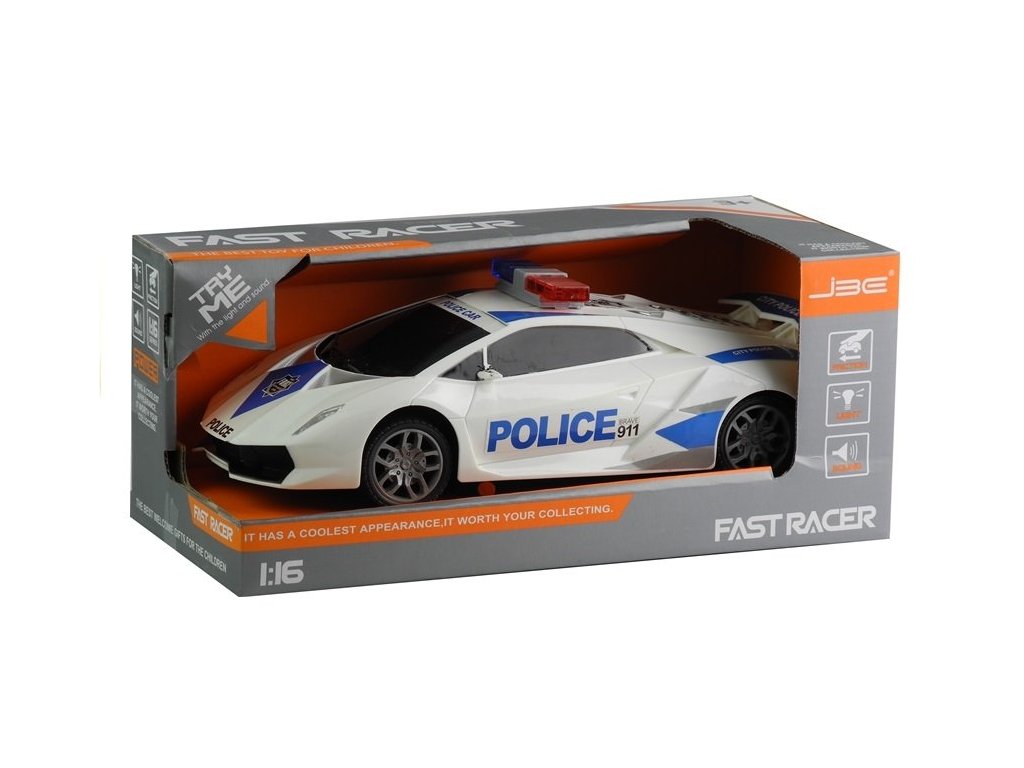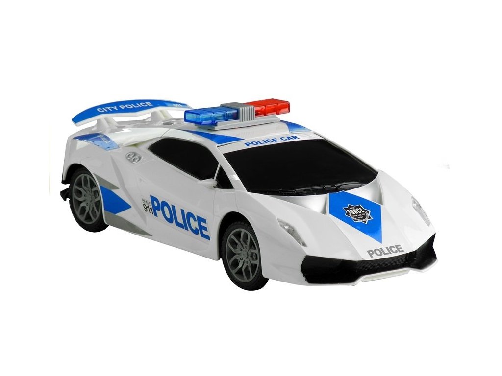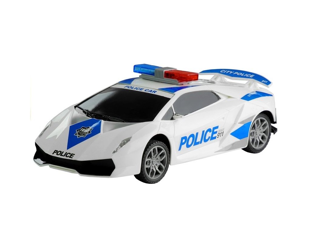 Policajné auto pre všetky malé priaznivcov bezpečnostných služieb. Po jemnom stlačení masky policajného auta sa ozve policajná siréna a červeno-modré svetlá na streche začínajú blikať. Táto hračka je veľmi realistická. Hračka má pohyblivá kolesá, navyše má vozidlo trecí pohon, ktorý mu umožňuje cestovať na vzdialenosť bez pomoci dieťaťa. Prezentovaný model má certifikát CE, je určený pre všetky deti, ktoré dosiahli vek 3 rokov.