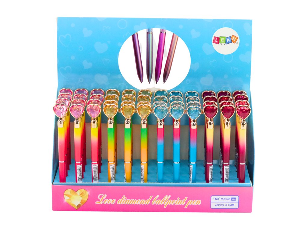 Tieto jedinečné farebné perá spája eleganciu a funkčnosť. Na jej konci je srdiečko, ktoré jej dodáva pútavý vzhľad. Modrý atrament robí pero ideálnym spoločníkom pre každodenné použitie aj pre špeciálne príležitosti. Je to skvelá voľba pre tých, ktorí chcú pridať šarm do svojich poznámok alebo korešpondencie.