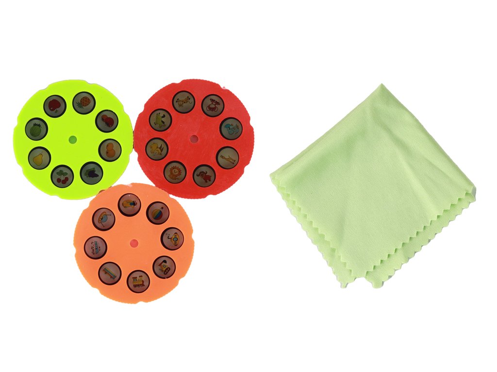 Set obsahuje 4 nožičky umožňujúce vytvorenie praktického stolčeka alebo ležiacej tabule, prispôsobiteľné pohodlie a potrebám malého umelca. S tromi diskami obsahujúcimi rôzne vzory, ponúka až 24 jedinečných motívov na vykreslenie, inšpirujúce k nekonečným kreatívnym experimentom.