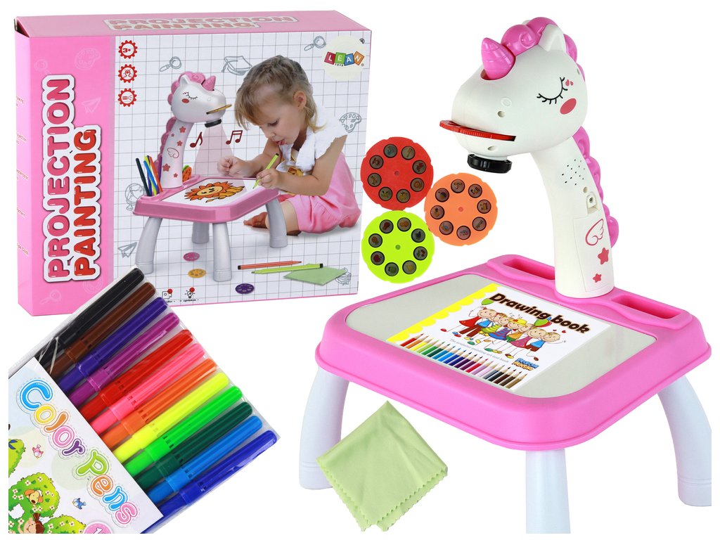 Projektor jednorožec pre maľovanie stolík tabuľa ružový