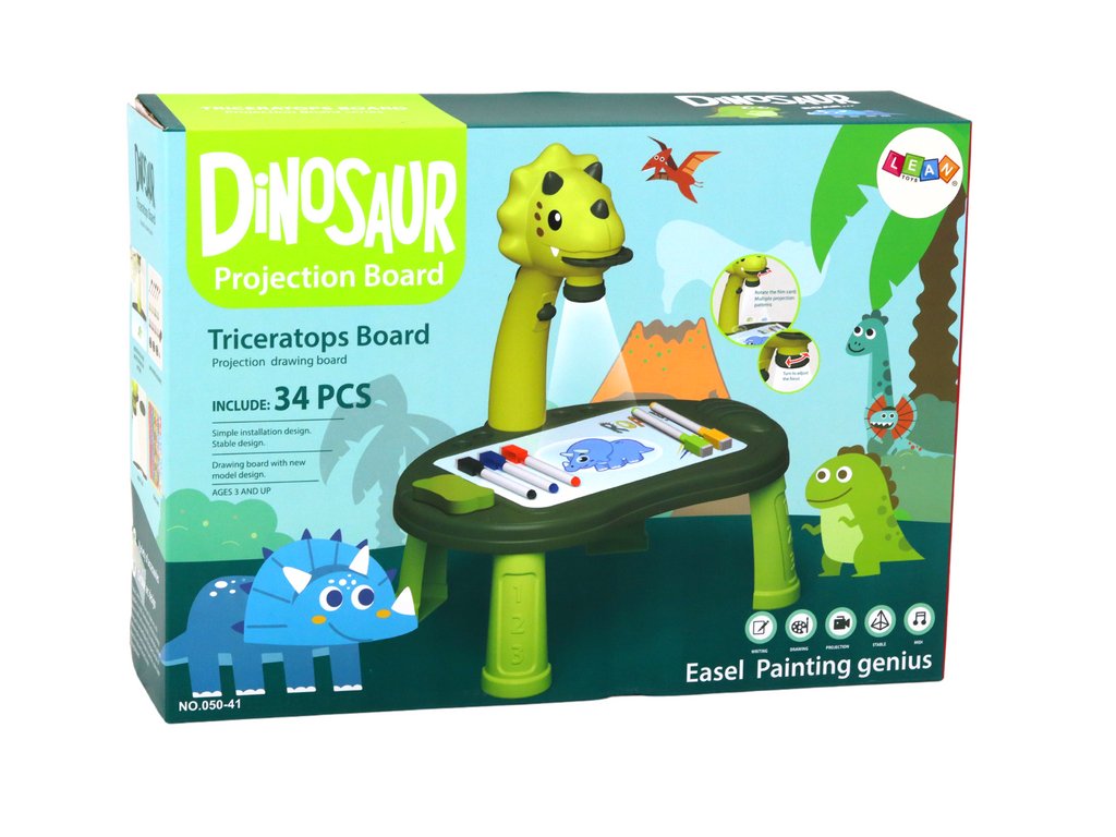 Projektor kreslenie dinosaurus so stolíkom a 2v1 hrou Hady a rebríky zelený