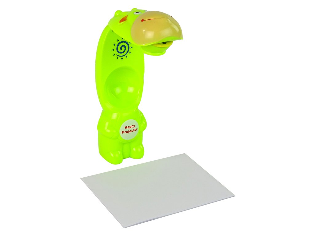 Projektor je vyrobený v zelenej farbe a je skladací, takže sa ľahko zmestí do batohu. Pohyblivá hlava umožňuje nastaviť uhol a zaostrenie premietaného obrazu. Na spustenie projektora stačí vložiť disk s obrázkami, aktivovať tlačidlo na zadnej strane a je hotovo!