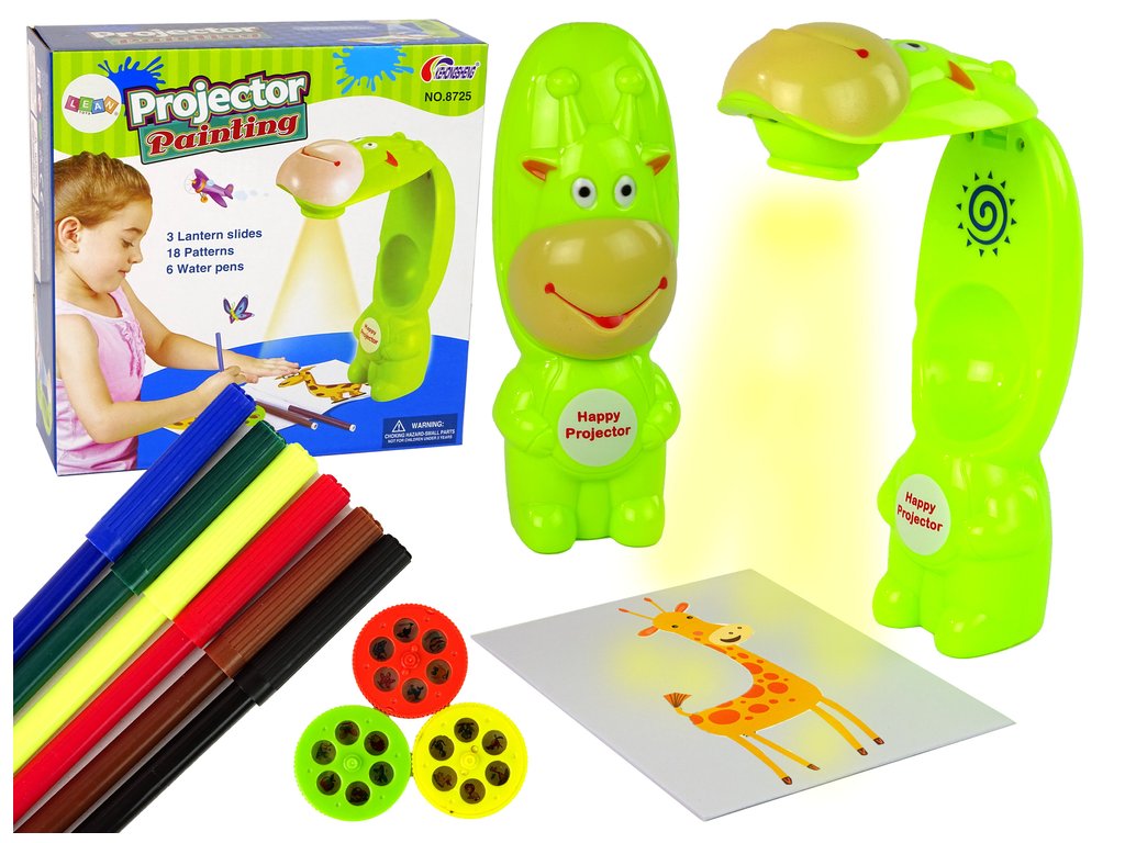 Projektor je skvelým darčekom pre všetky deti, ktoré rady kreslia. Táto hračka v sebe skrýva dve funkcie - môže byť ako premietačkou, tak aj projektorom. Pri hre s týmto predmetom je možné ľahko kopírovať obrázky z priložených predlôh a tiež ich zobraziť napríklad na stene. Veríme, že je to záruka dlhej, rozvíjajúcej hry.