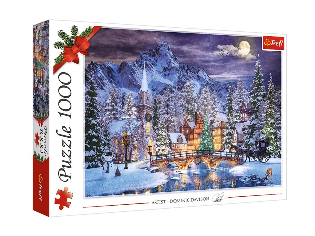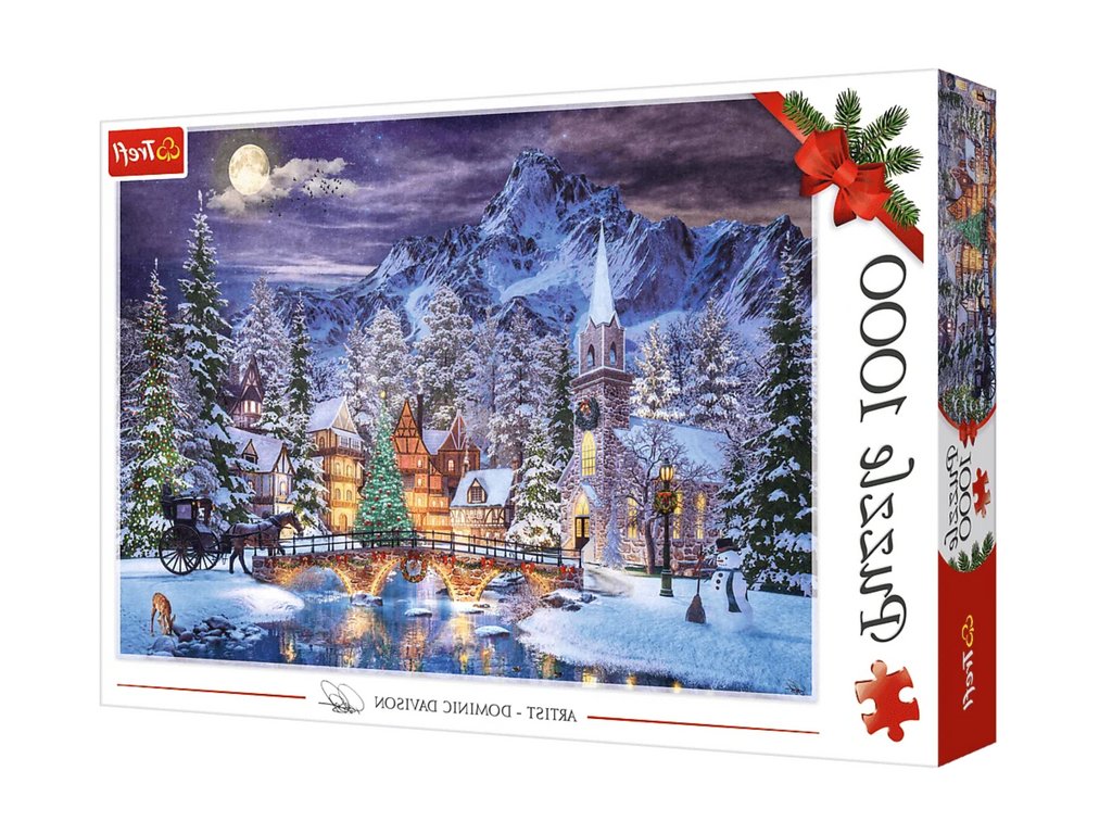 Puzzle Sviatočná atmosféra sa skladajú z 1000 dielikov a predstavujú nádhernú, sviatočnú krajinu. Po zložení vznikne obrázok o rozmeroch 683x480 mm.