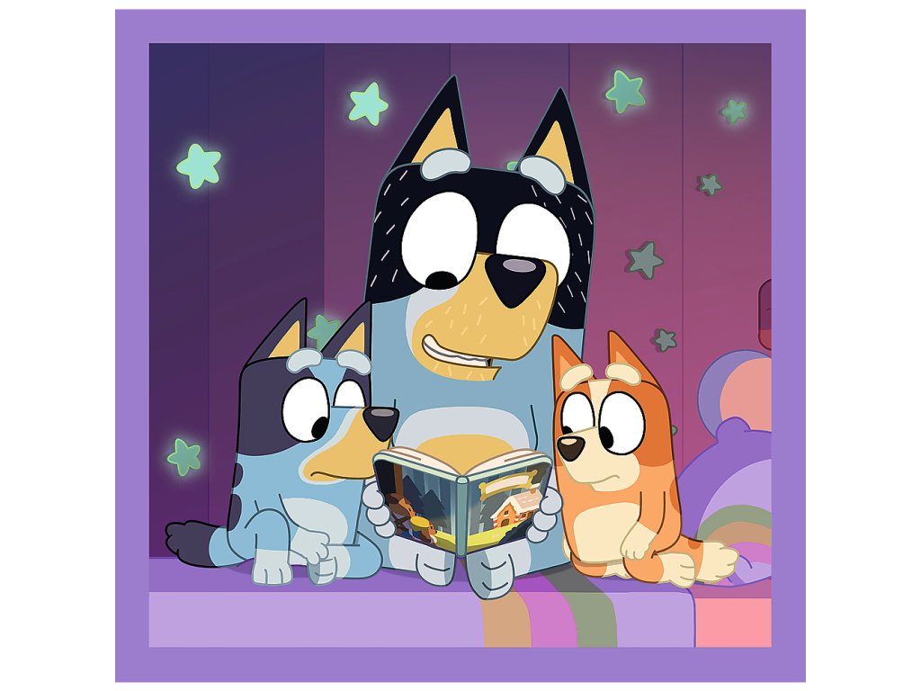 Spoznaj Bluey - 3 samostatné puzzle pre deti, ktoré boli navrhnuté pre malých fanúšikov rozprávky Bluey. Po zložení puzzle vzniknú tri obrázky, z ktorých najväčší má rozmery 200 x 195 mm. Rôzny počet dielikov umožňuje hrať sa ako mladším, tak aj starším deťom.