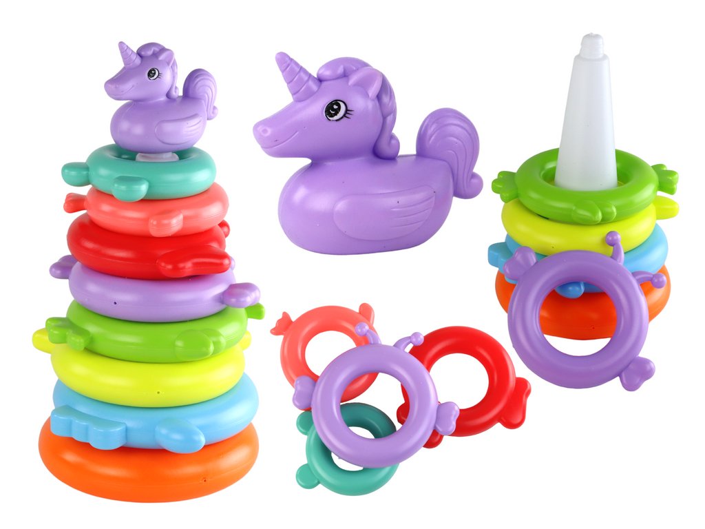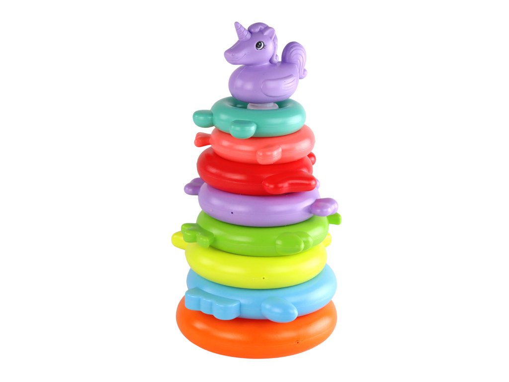 Pyramídka Jednorožec skladačka 8 krúžkov farebná 29cm x 14cm x 14cm