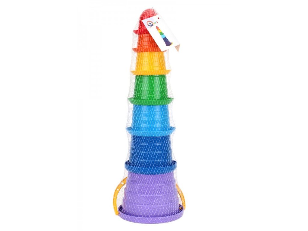 Pyramída vo farbách dúhy je hračka, ktorá je vynikajúca pre rozvoj batoľaťa. Skladá sa z téglikov v rôznych farbách. V hornej časti hračky je najmenší kelímok. Sú vyrobené z bezpečného, netoxického materiálu, ktorý sa vyznačuje robustnosťou a odolnosťou. Pyramída má veľmi racionálny, zaoblený tvar, čo prispieva k úrovni bezpečnosti, ktorá plynie z používania predmetu.