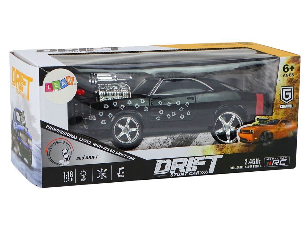 Autíčko na diaľkové ovládanie 1:18 Drift 360 Svetlá Zvuky Čierne