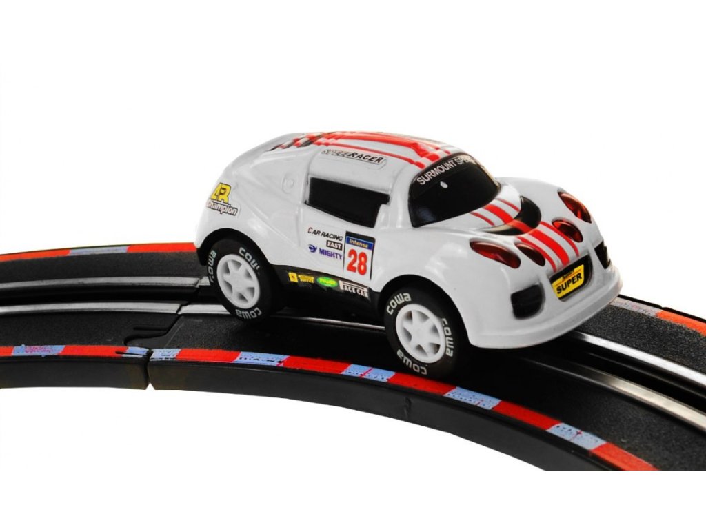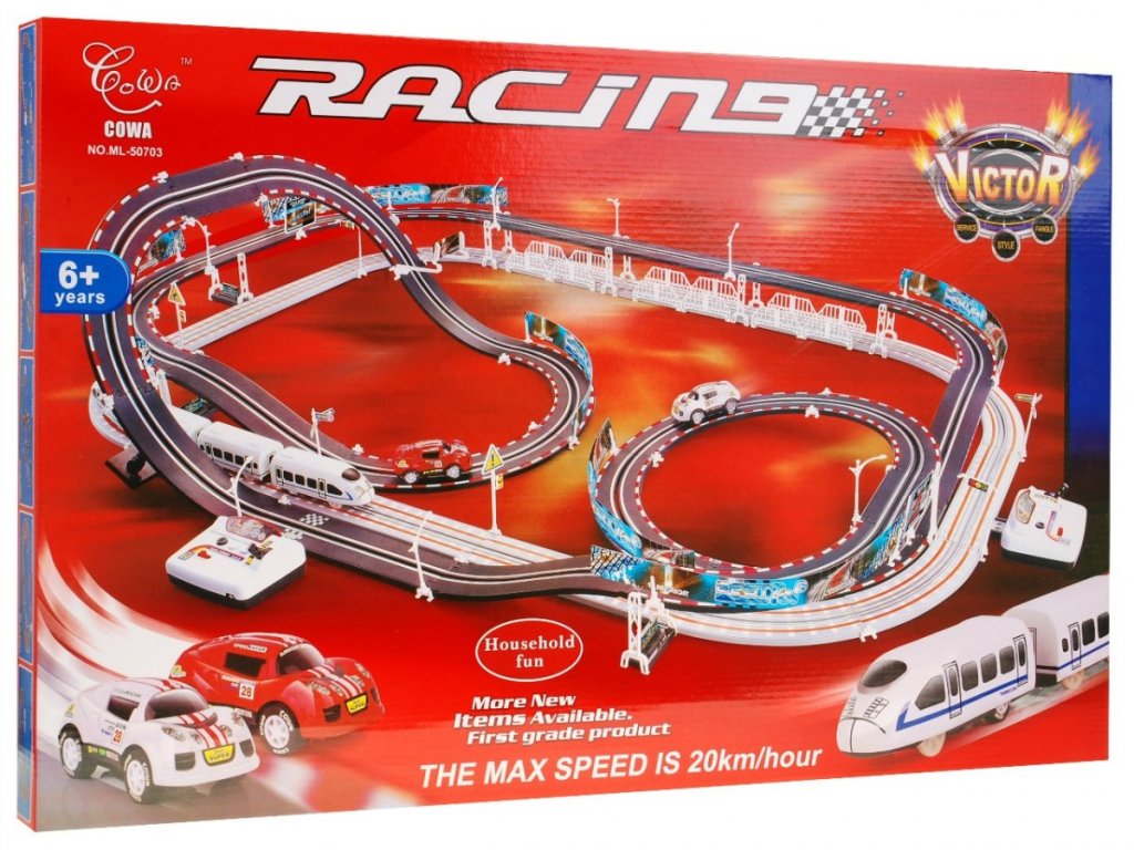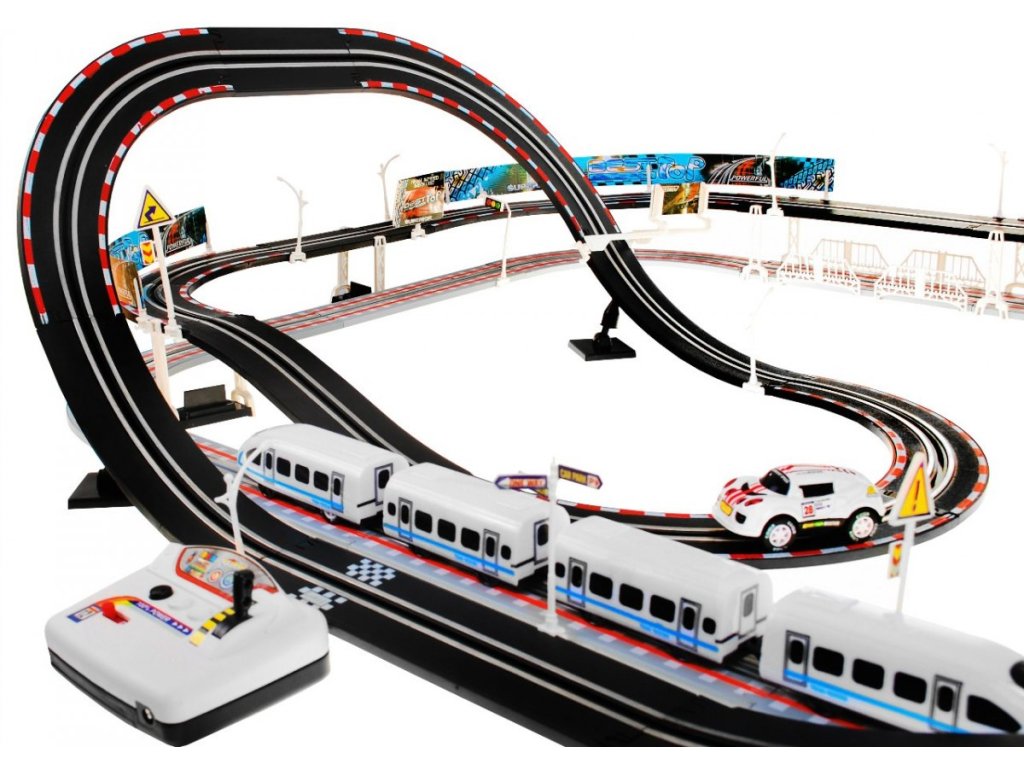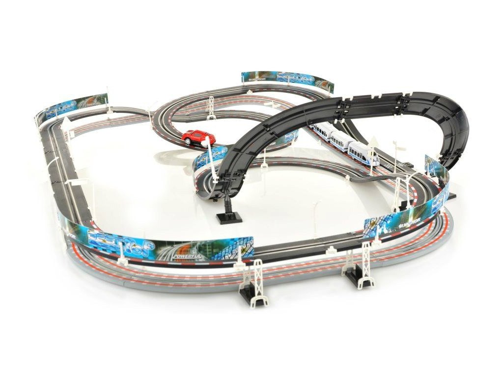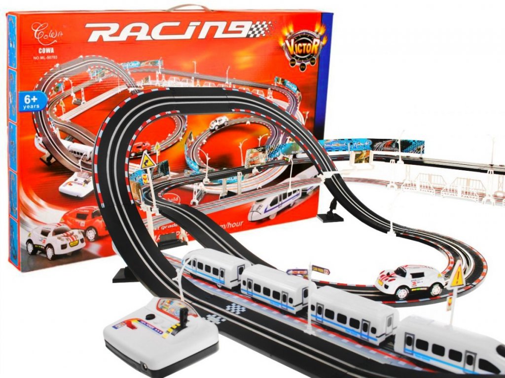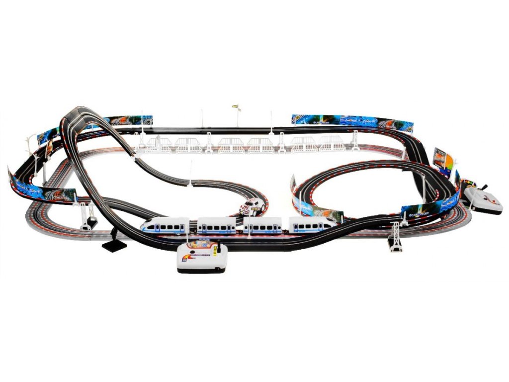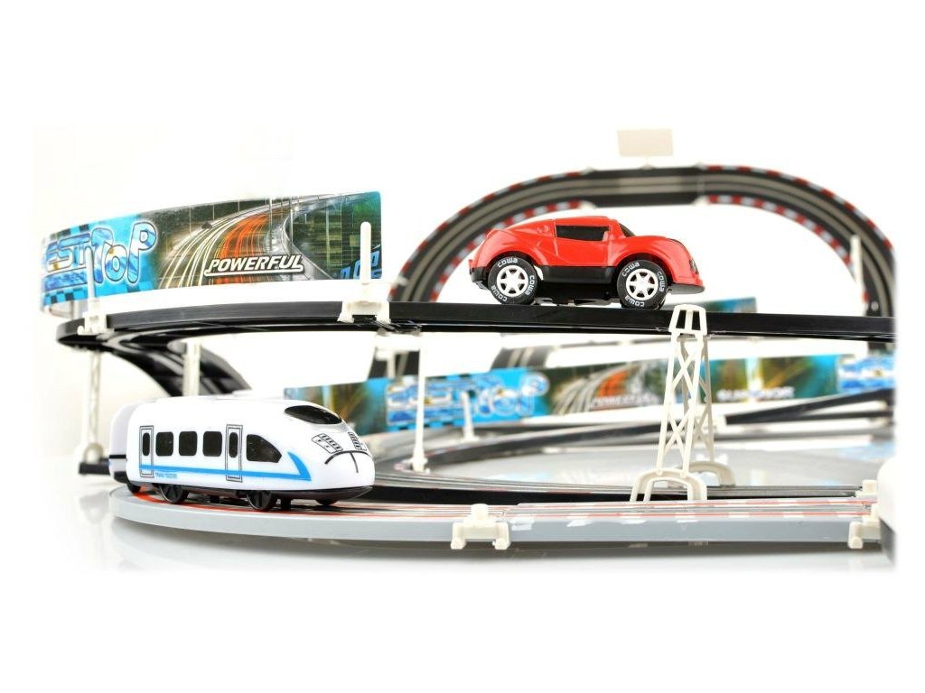 Superrýchla dvojpodlažný autodráha, po ktorej môže jazdiť ako auto, tak aj vlak. Možnosť regulácie rýchlosti, spustenie turbo jazdy alebo zmeny smeru jazdy. Táto jedinečná sada je ideálna hračka pre mladých učňov a amatérske pretekanie v poradí, živých farieb, precízne a veľmi starostlivé prevedenie a pozornosť k detailu bude iste priťahovať pozornosť dieťaťa na dlhú dobu a nenechá ho nudiť.