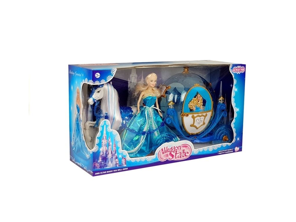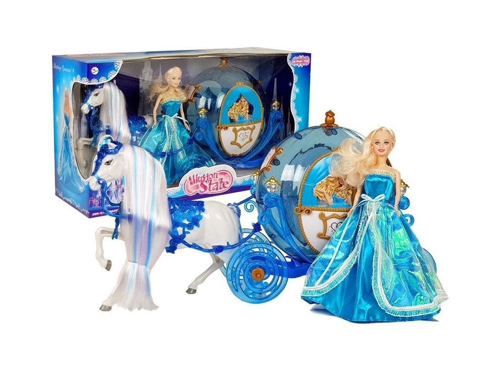Splňte sen každej malej princeznej s touto rozprávkovou sadou. Obsahuje nádherného bieleho koňa s hrivou, elegantný kočiar s pohyblivými kolesami a detailne prepracovanú bábiku vo večerných šatách. Kočiar s otváracími dverami a zlatými detailmi pôsobí ako z rozprávky, zatiaľ čo bábika s jemným líčením a dlhými blond vlasmi je dokonalou princeznou. Sada je vyrobená z bezpečných materiálov a ponúka hodiny kúzelnej zábavy pre deti.