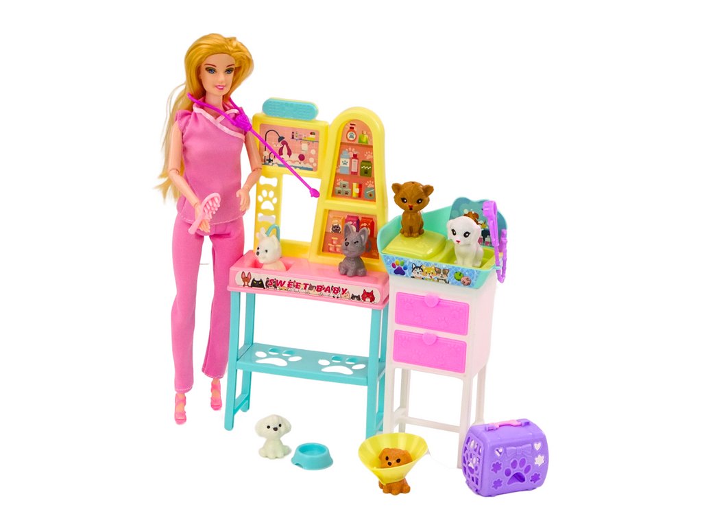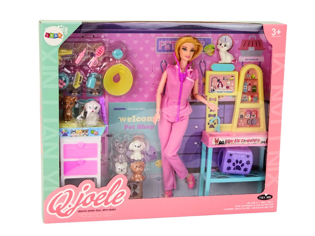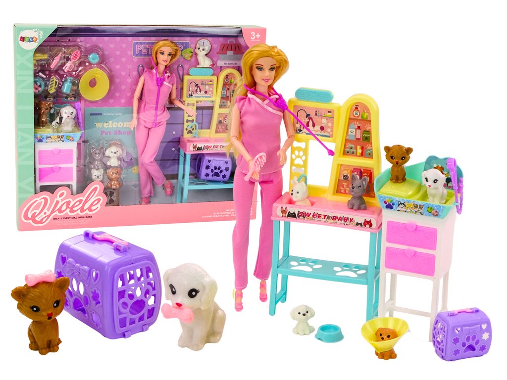 Sada bábika veterinárka je komplexná hračka, ktorá prenáša deti do fascinujúceho sveta starostlivosti o zvieratá. Ústrednou postavou sady je bábika – pani doktorka, oblečená do lekárskeho uniformu, ktorý jej dodáva autentický vzhľad veterinárky. Jej pohyblivé končatiny a zápästia umožňujú pohodlne vykonávať rôzne gestá, ako je držanie zvieratka v náručí alebo manipulácia s lekárskymi pomôckami.