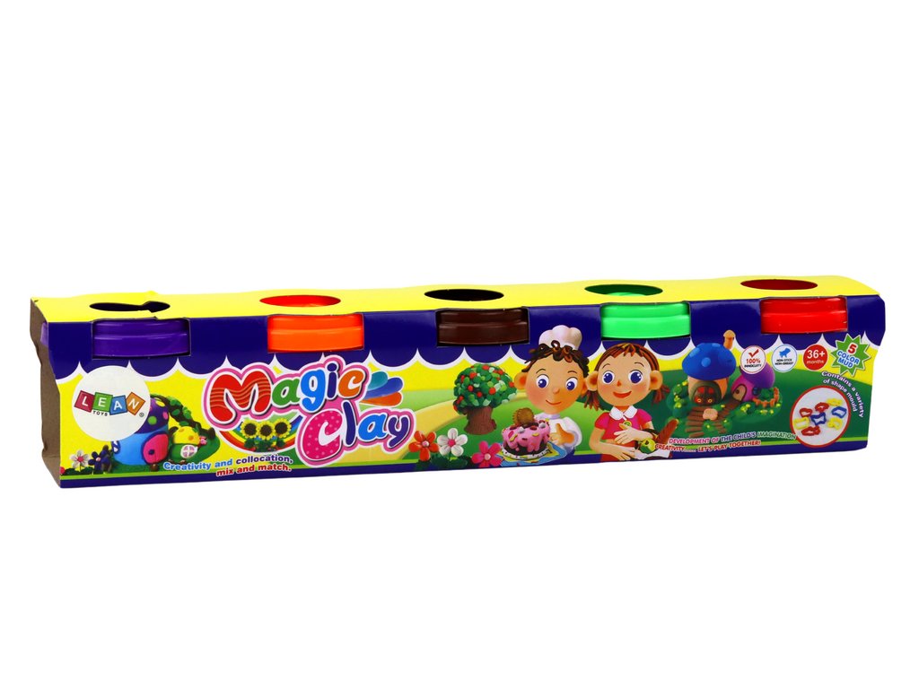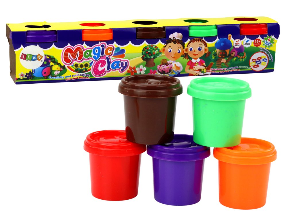 Sada obsahuje 5 rôznych farieb modelíny, každá je zabalená v samostatnom tégliku.