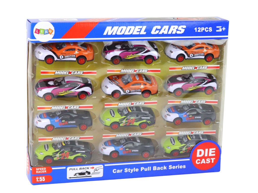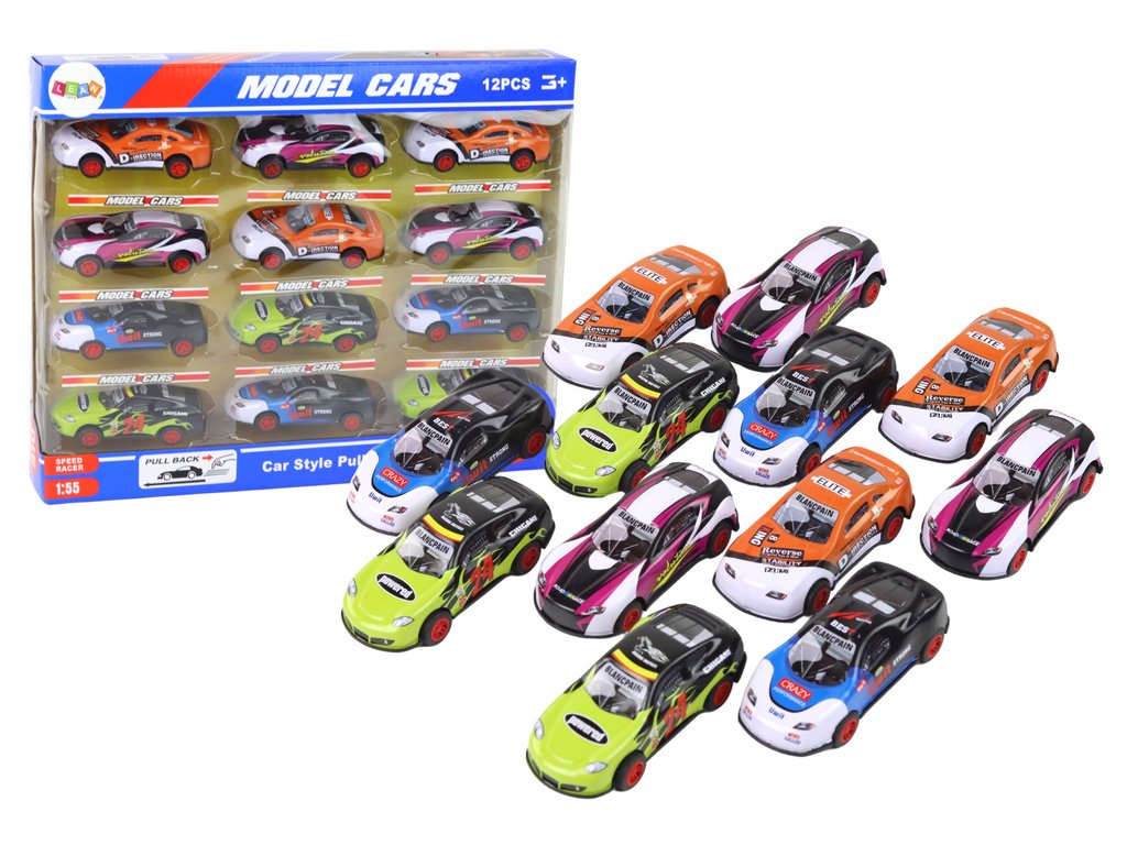 Sada farebných športových autíčok 1:55 s trecím pohonom 12 kusov