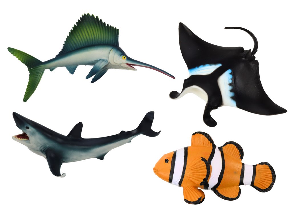Set figúrok morských zvierat nie je len zberateľskou radosťou, ale aj vzdelávacou a kreatívnou hrou. Set obsahuje päť impozantne realistických modelov: žraloka, delfína, raju, plachetníka a klauna. Každá figúra bola starostlivo navrhnutá, aby zachovala charakteristické rysy každého zvieraťa.