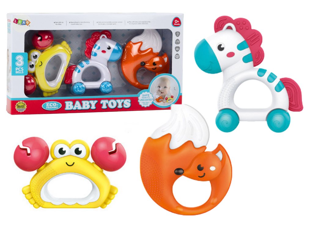 Zestaw hračiek pre dojčatá Rachotky Hrkálky Zebra Krab Líška 3 Ks