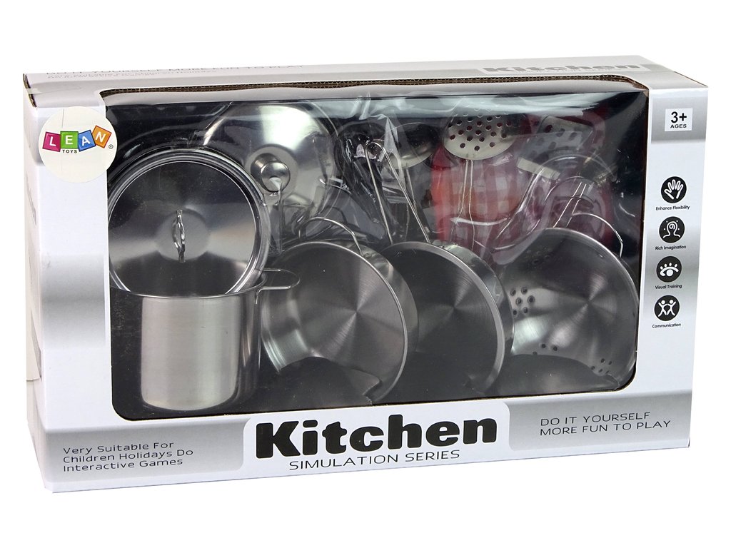 Všetky kuchynské doplnky majú striebornú farbu, čo im dodáva realistický vzhľad. Náš set skvele podporuje rozvíjanie predstavivosti a kulinárskych zručností pri hraní.