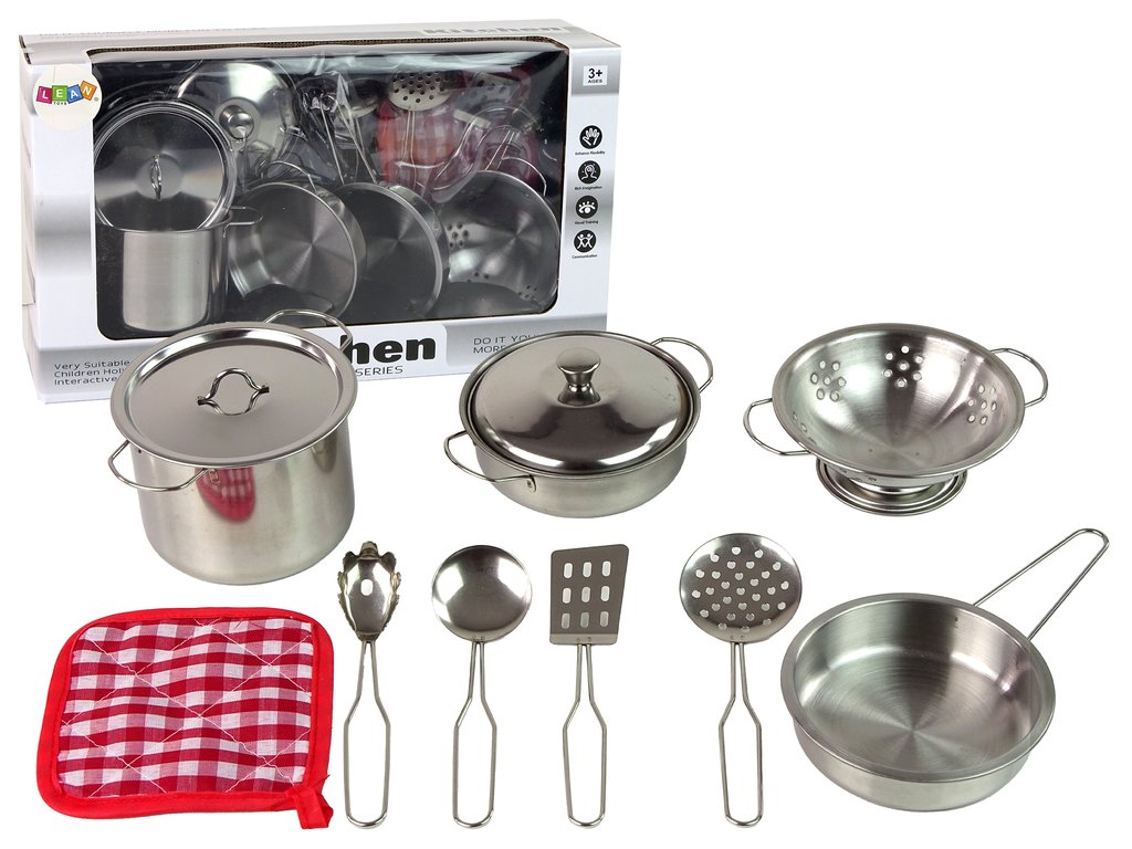 Naša sada kovových hrncov a kuchynských doplnkov je ideálna hračka pre malých kuchárov. V tejto sade nájdete všetko, čo je potrebné na napodobňovanie úžasných kulinárskych scén.