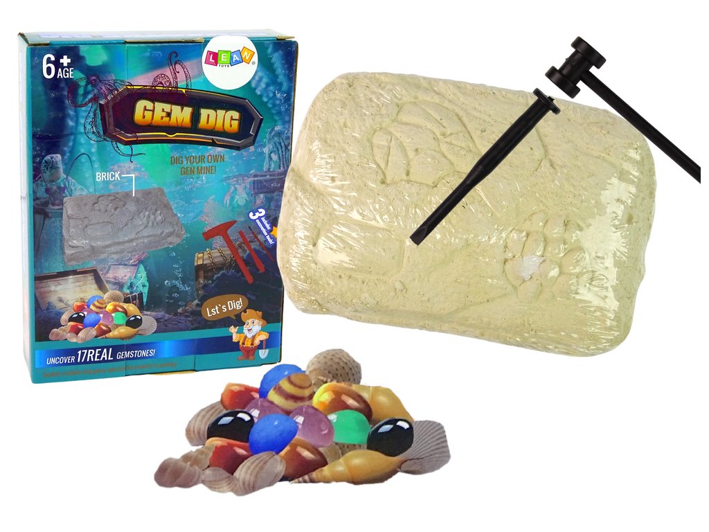Úlohou dieťaťa je vykopať záhadné klenoty ukryté v sadre pomocou troch nástrojov.