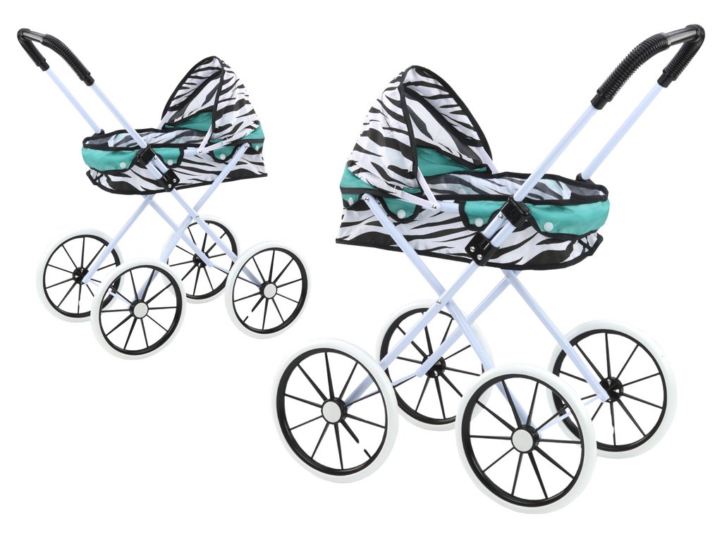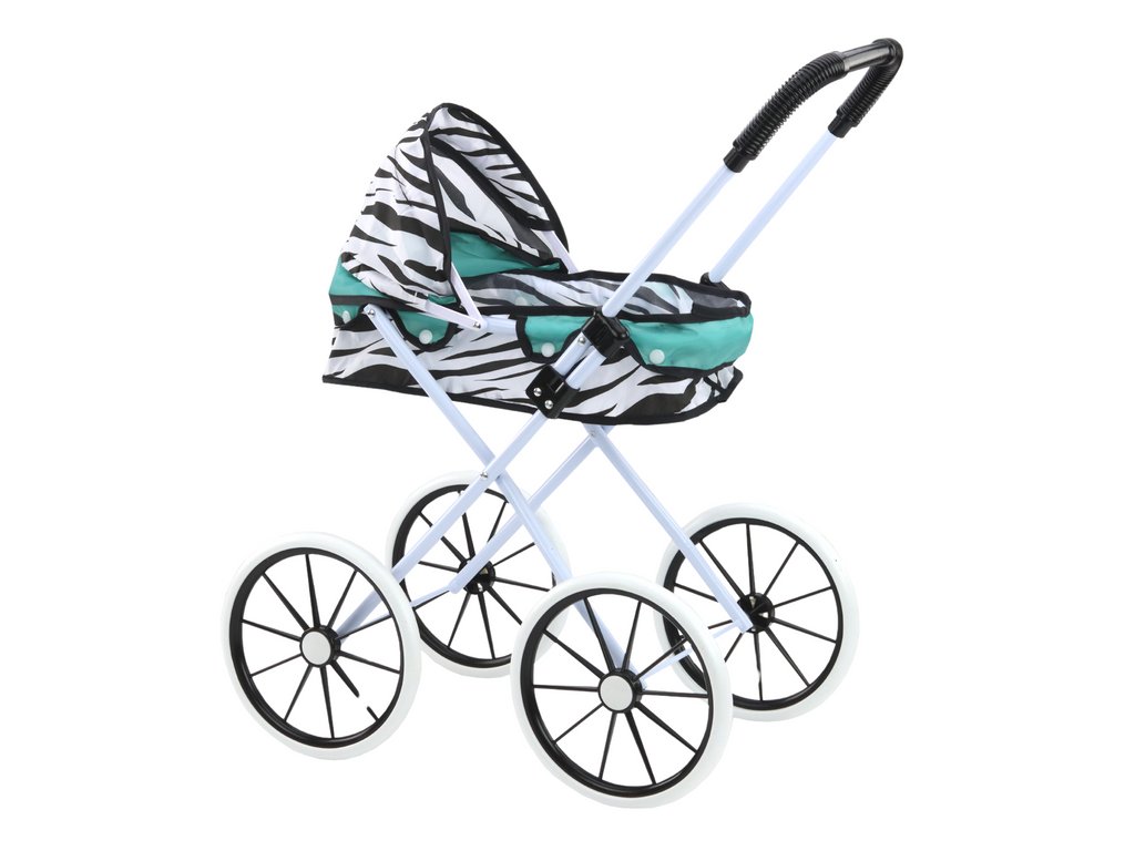 Skladací kočík pre bábiky s veľkými kolesami Zebra tyrkysový