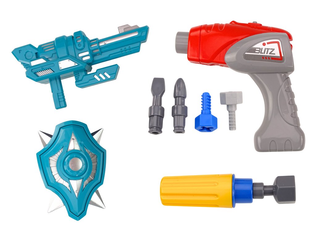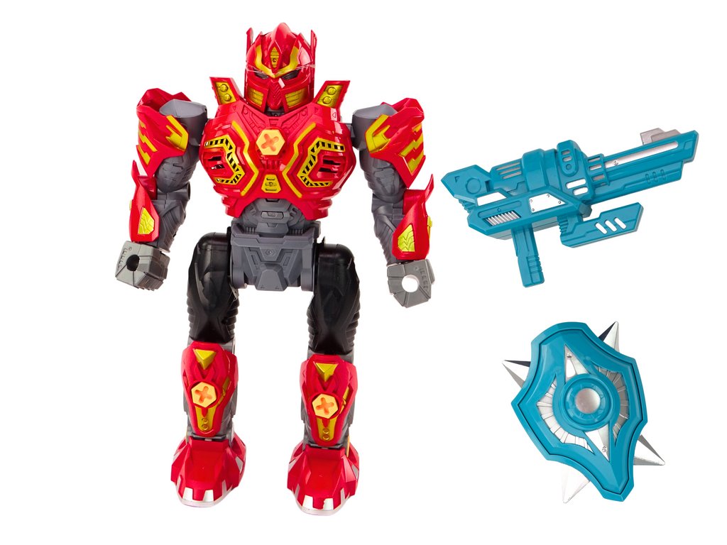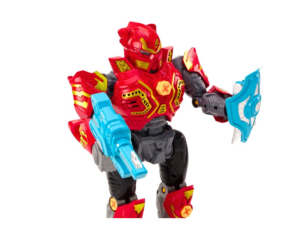 Robot je vybavený štítom a zbraňou v tyrkysovej farbe, čo pridáva prvok fantastického dobrodružstva do hry. Dieťa si môže predstaviť, že robot bojuje proti nepriateľom alebo plní špeciálne misie, čo rozvíja jeho kreativitu a naratívne zručnosti.