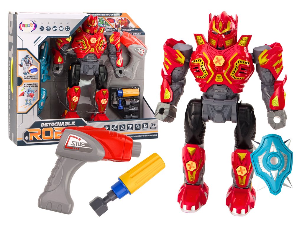 Úžasný červený robot na skrutkovanie je pokročilá hračka, ktorá určite nadchne každé dieťa. Vyrobený z odolného a pevného materiálu, zaručuje dlhotrvajúcu a bezpečnú zábavu. Robot bol navrhnutý s ohľadom na rozvoj manuálnych zručností, pohybovej koordinácie a logického myslenia u detí.