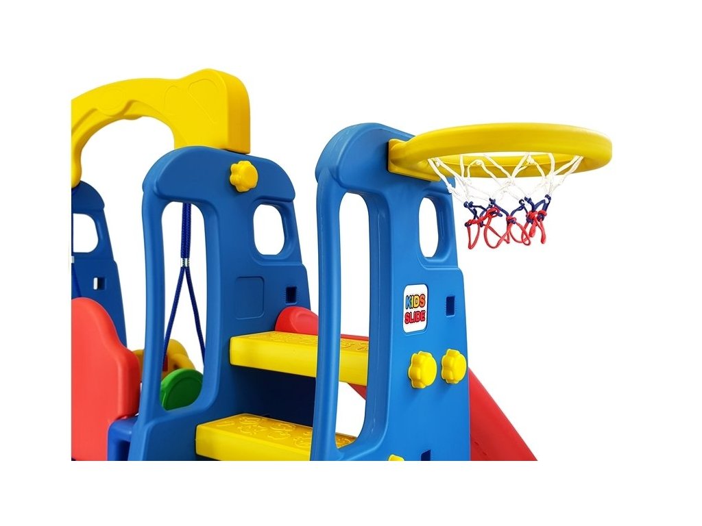 Detská hojdačka šmykľavka basketbalový kôš 3v1 modrá