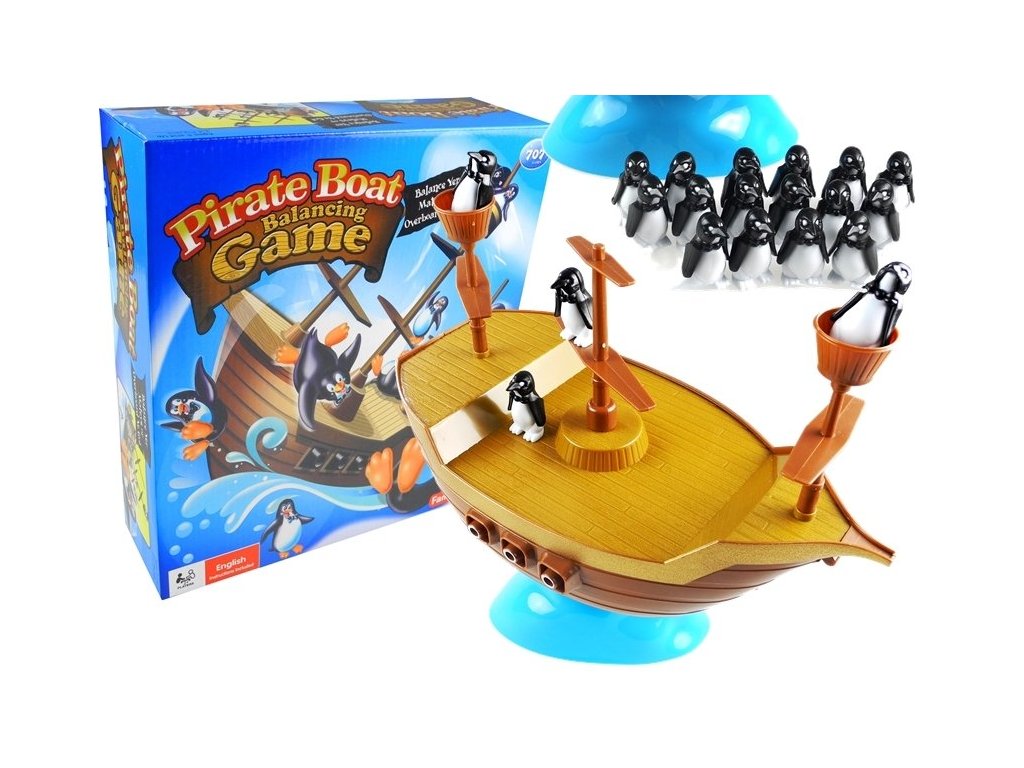 Padajúce tučniaky z pirátskej lode je skvelá spoločenská hra, ktorá Vás zabaví aj na niekoľko hodín. Udržať tučniakmi na lodi vyžaduje veľkú trpezlivosť, pretože loď sa neustále vyvažuje na morských vlnách. Rozmiestniť tučniakmi musíte na palube tak, aby nespadli. Dôležité je teda zvoliť správnu stratégiu a premyslieť si svoj každý ťah.
