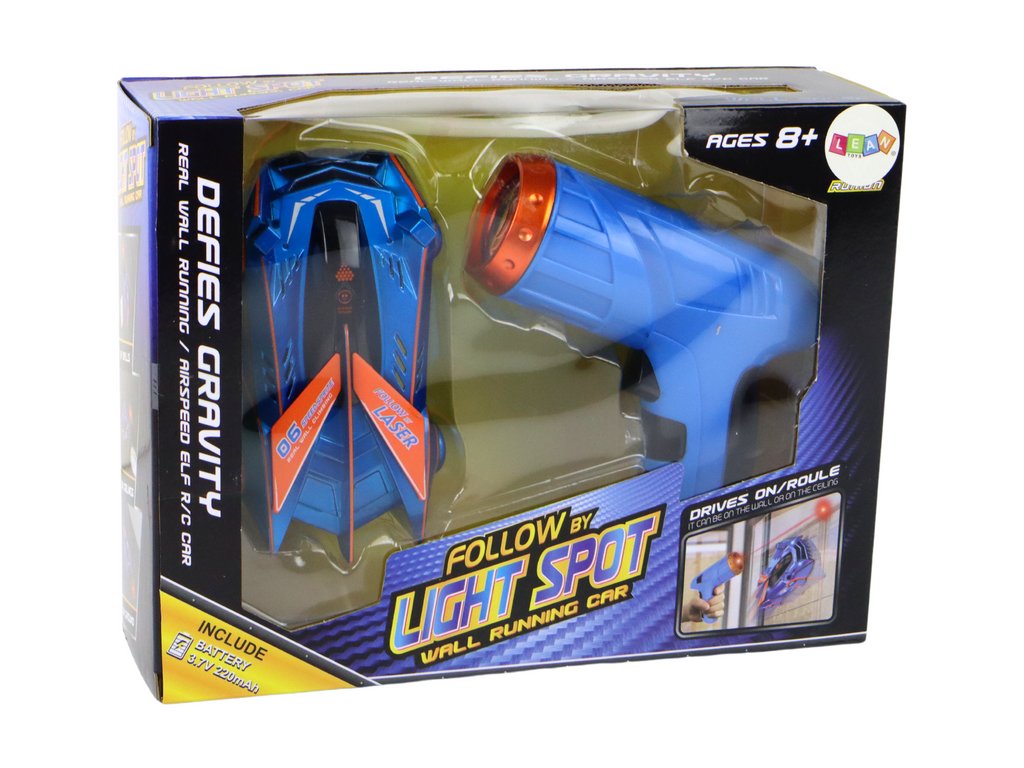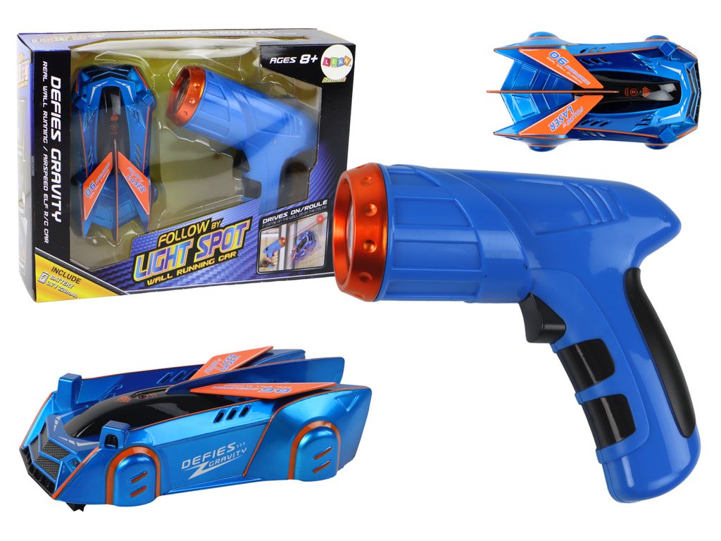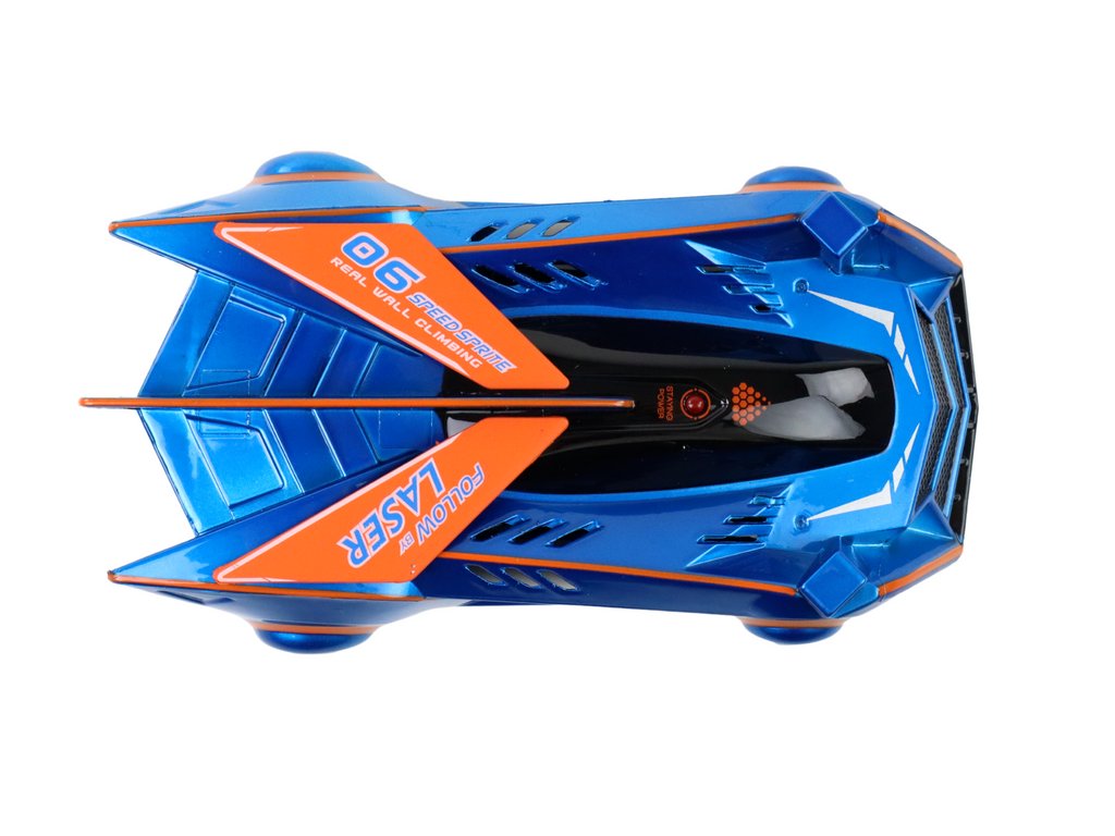 Športové autíčko jazdiace po stenách a strope na laser modrej