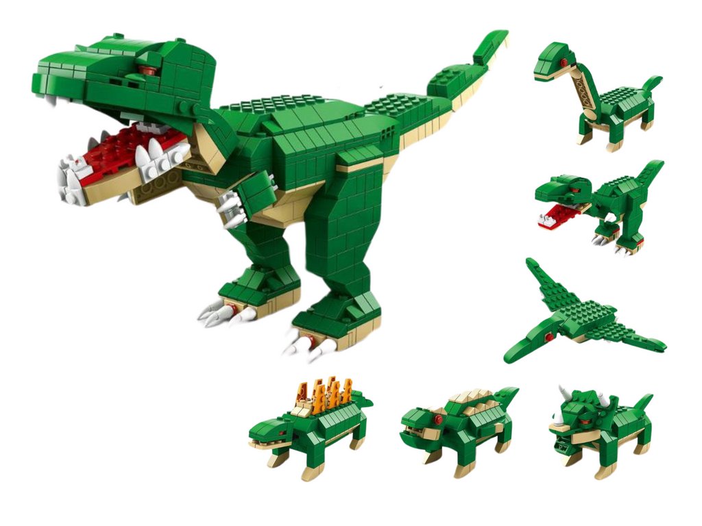 Stavebnica s motívom dinosaurov , ktorá určite poteší deti aj dospelých. Táto kreatívna sada 6 v 1 sa skladá z 1 000 starostlivo vyrobených dielikov , ktoré umožňujú zostaviť šesť rôznych modelov dinosaurov.