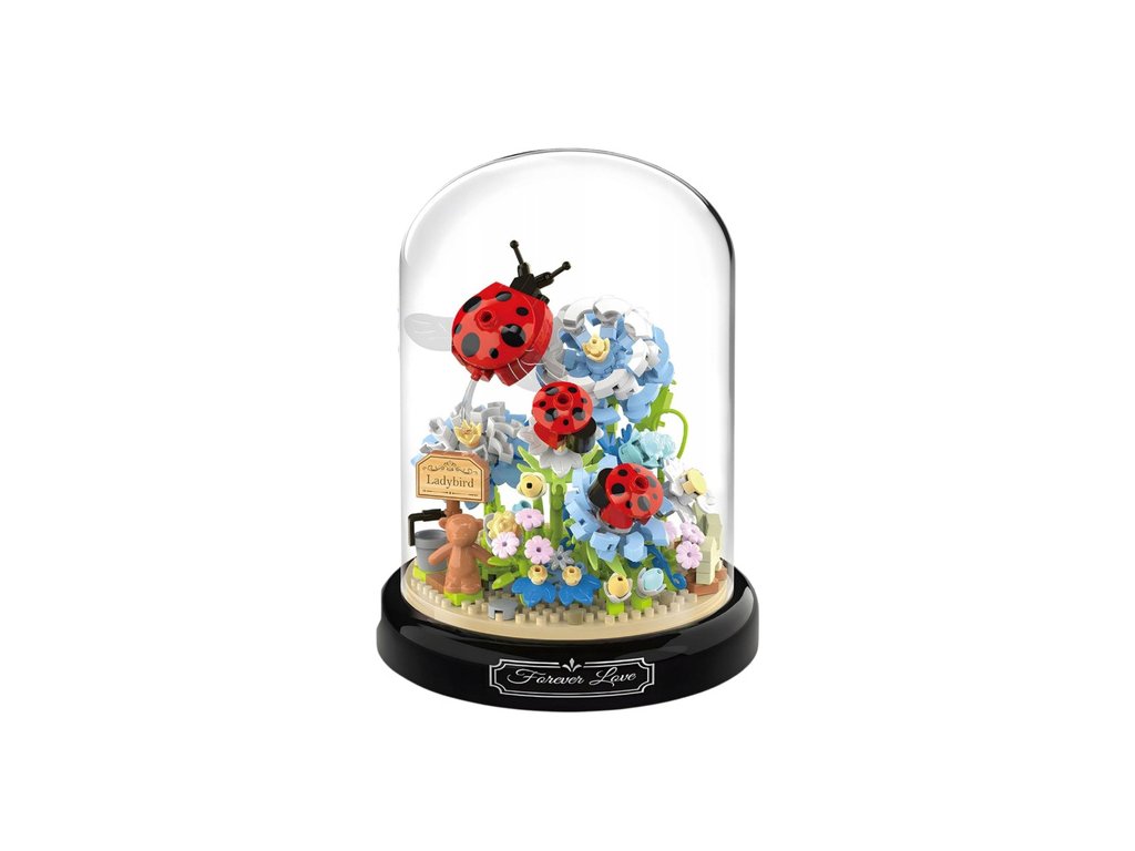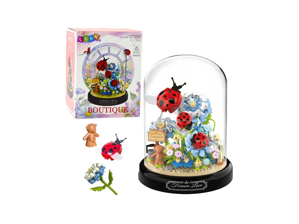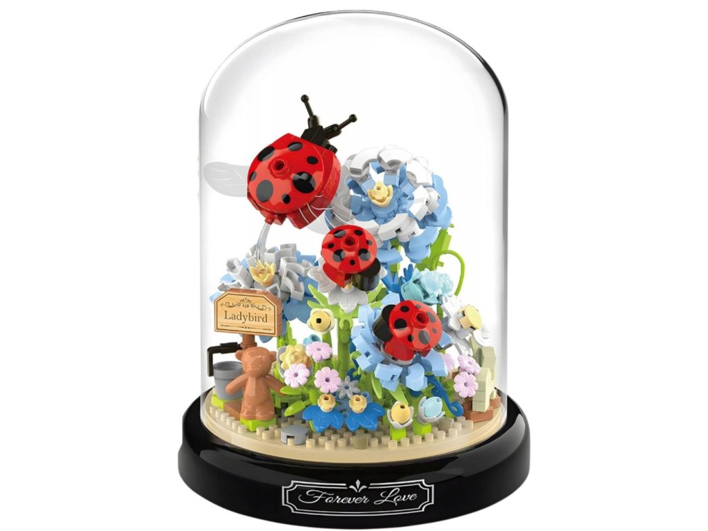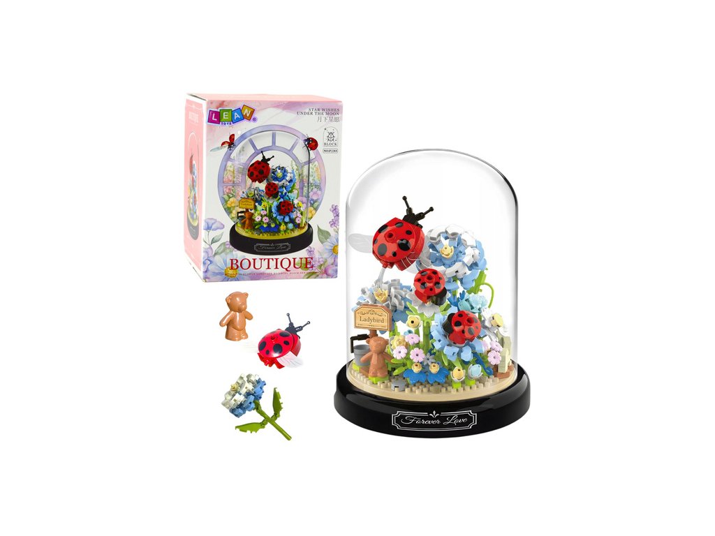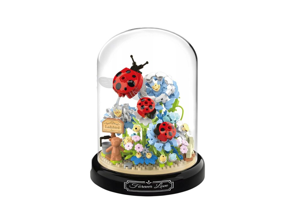 Stavebnica Kvetinová kompozícia s lienkami v kupole 596 dielikov
