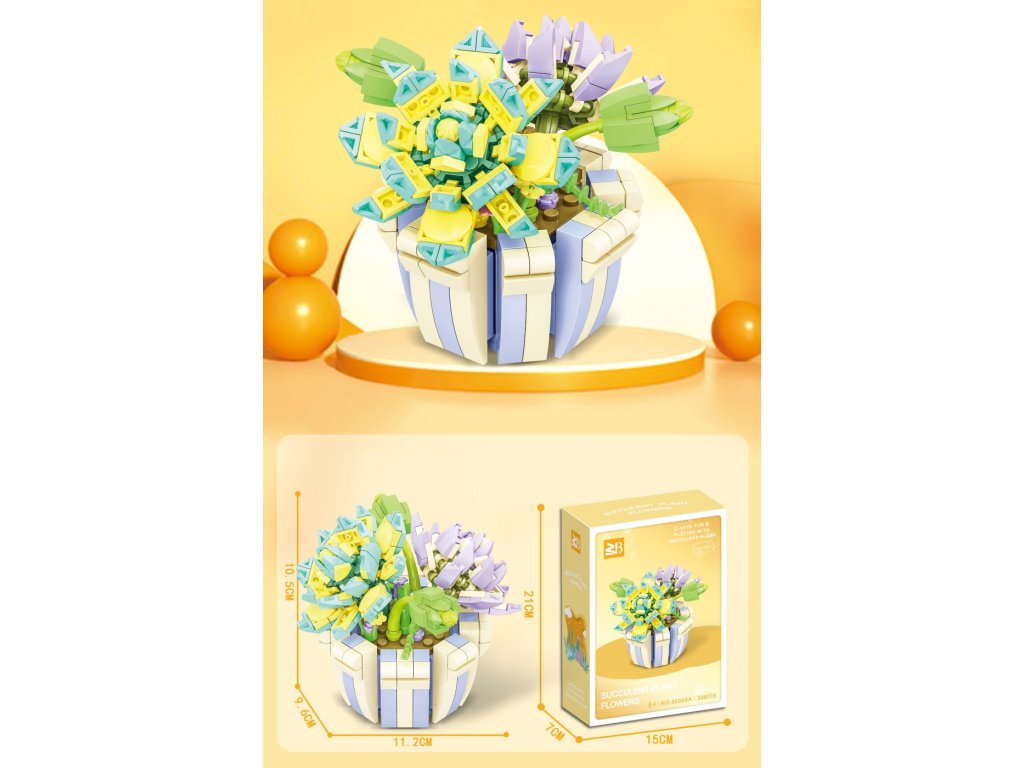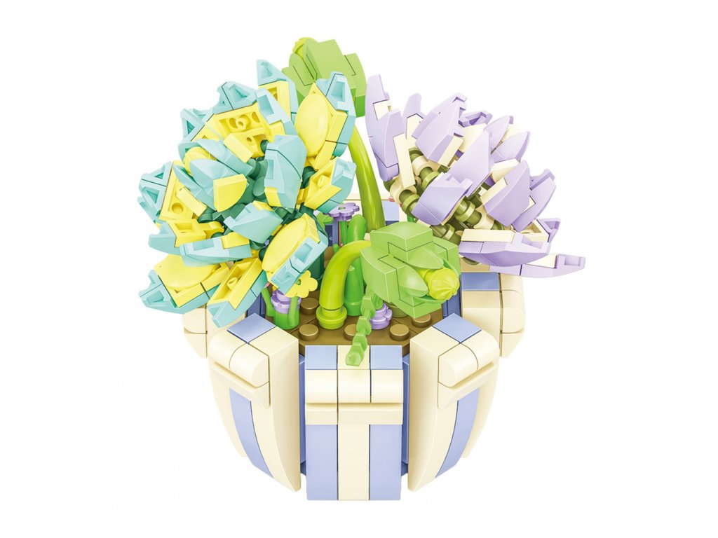 Vysoko kvalitné stavebnice pre deti od šiestich rokov. Súprava sa skladá z 306 dielikov, z ktorých je možné postaviť kvety v kvetináči a potom ich darovať blízkej osobe alebo použiť ako dekoráciu. Táto nádherná kvetinová kompozícia vytvorená zo stavebných kociek určite upúta pozornosť svojimi detailmi.