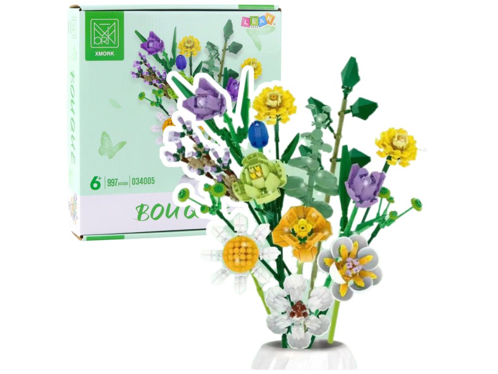 Stavebnica farebná kytica je bohatý kreatívny set, ktorý vám umožní zostaviť až 13 rôznych kvetov s jedinečnými tvarmi, farbami a detailmi. S celkom 997 dielmi si vytvoríte osobitú kvetinovú kompozíciu, ktorá ozdobí váš domov alebo kanceláriu a nikdy nezvädne. Skvelá voľba pre všetky vekové kategórie – ako zábava, relax aj štýlová dekorácia.