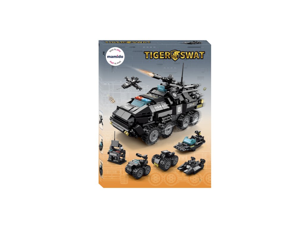 Stavebnica SWAT Tiger 6v1 ponúkne nekonečné množstvo zábavy a akčných dobrodružstiev. Z 371 dielikov je možné vytvoriť šesť rôznych modelov – od obrneného vozidla s otočnou vežou cez malý tank až po prieskumné lietadlo alebo policajný čln.