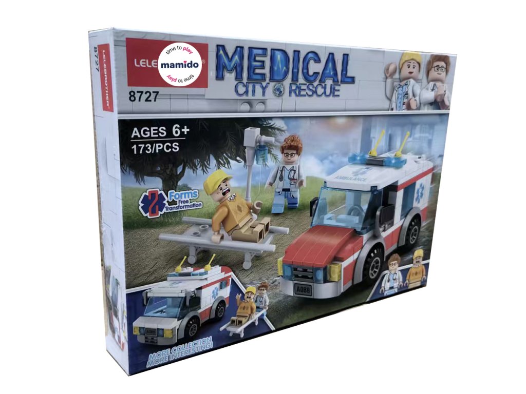 Stavebnica sanitky Medical Rescue je ideálnou voľbou pre deti, ktoré milujú skladanie, kreativitu a akčné príbehy. Súčasťou balenia sú dve figúrky – lekár a pacient – a tiež nosidlá, vďaka ktorým deti ľahko zahrajú záchranné misie, prvú pomoc aj transport zraneného. Stavebnica podporuje jemnú motoriku, trpezlivosť aj logické myslenie, a zároveň umožňuje vytvárať vlastné herné scenáre.