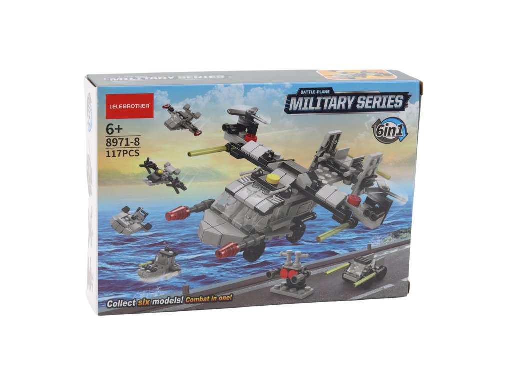 Stavebnica vojenský vrtuľník ponúka kreatívnu zábavu pre malých aj veľkých milovníkov konštrukcií. Sada obsahuje 117 precízne spracovaných dielikov , ktoré umožňujú zostaviť až šesť rôznych modelov vozidiel.