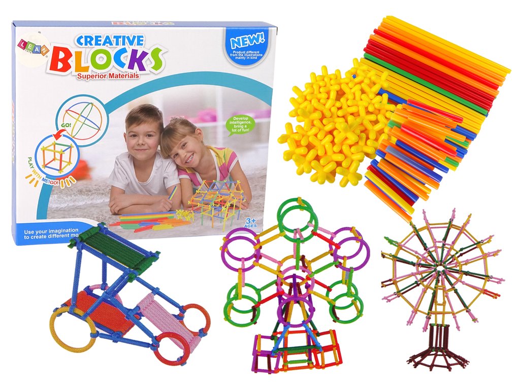 Stavebnice Stavebné kocky Tyčinky Slamky