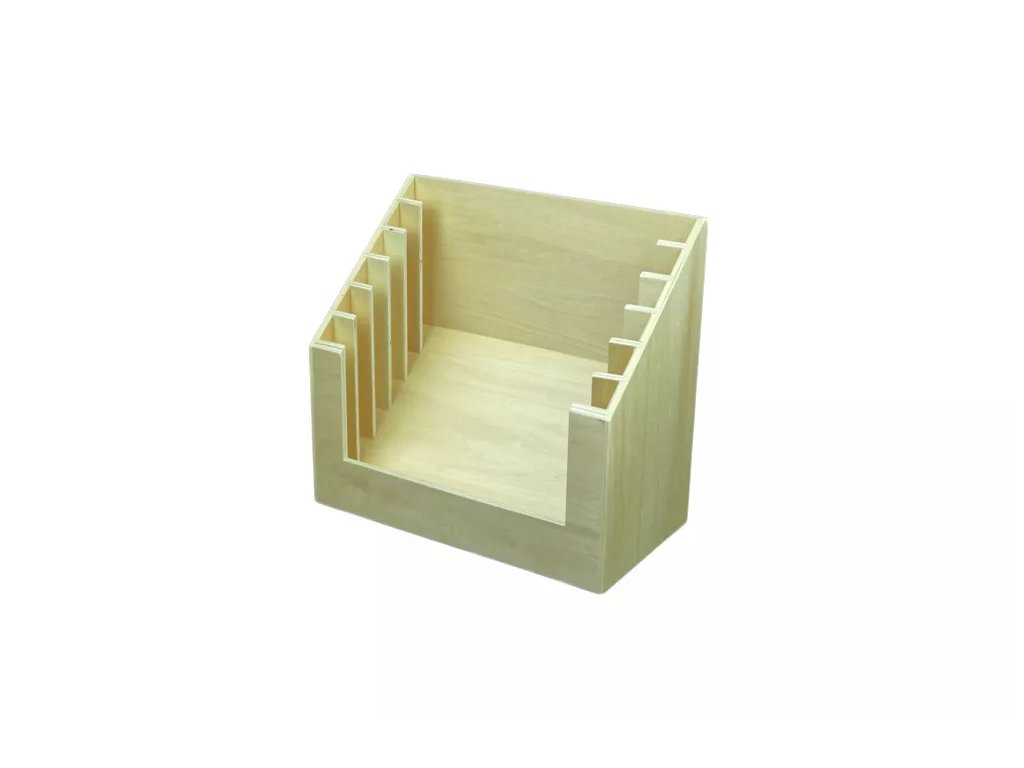 Stojan je navrhnutý tak, aby pojal šesť rámov používaných v montessori prostredí. Uľahčuje organizáciu pomôcok a ich vystavenie tak, aby boli ľahko dostupné pre deti aj pedagógov.