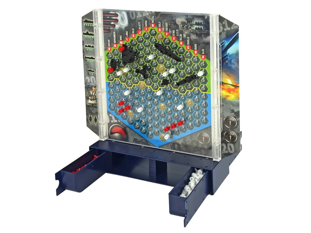 - Hra je určená pre dve osoby staršie ako 5 rokov. Hra je určená pre dve osoby. Všetky súčasti, z ktorých sa hračka skladá, teda kufríky a vodné lode, sú vyrobené z odolného, pevného plastu. Hračka je vyrobená z materiálu bezpečného pre človeka, ktorý nie je toxický, a preto má certifikát CE.