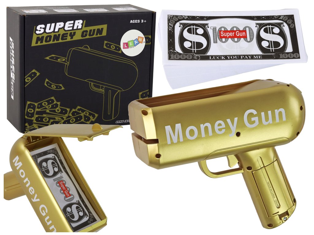 Strieľajúce zlatá pištoľ na peniaze - Money Gun bankovky
