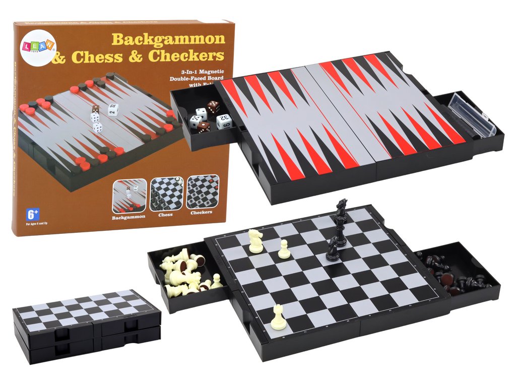 Set hier 3v1 Magnetická Doska Šach Dáma Backgammon