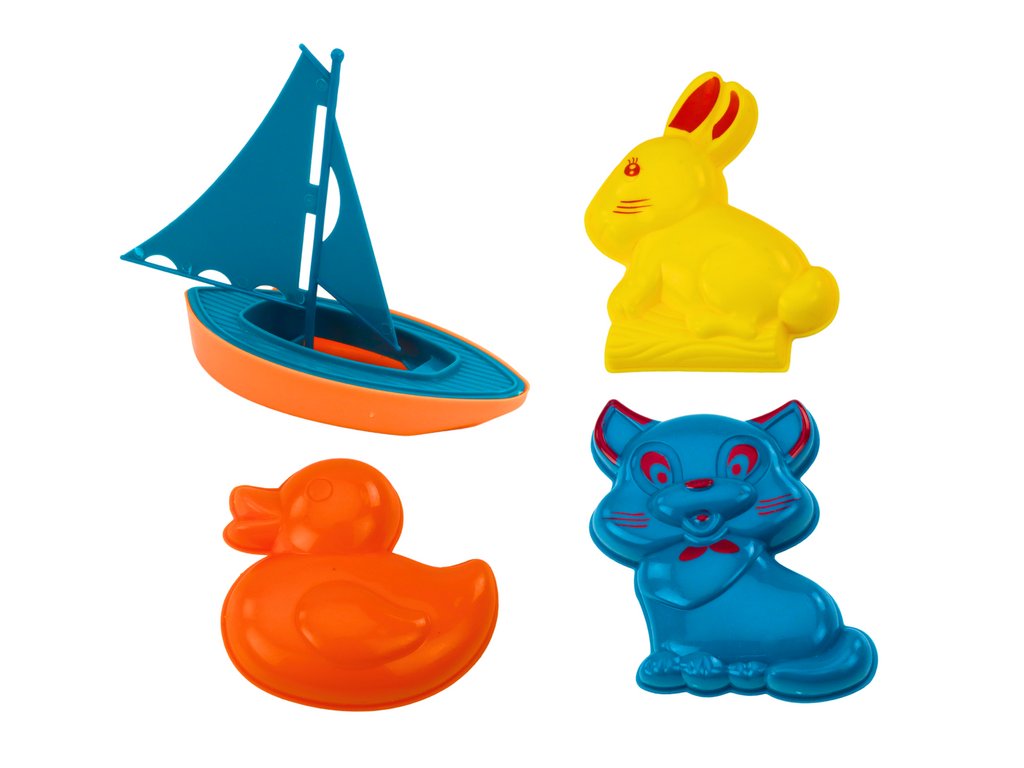 Súprava hračiek do piesku bábovky zvieratká loďka tyrkysová