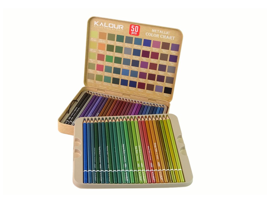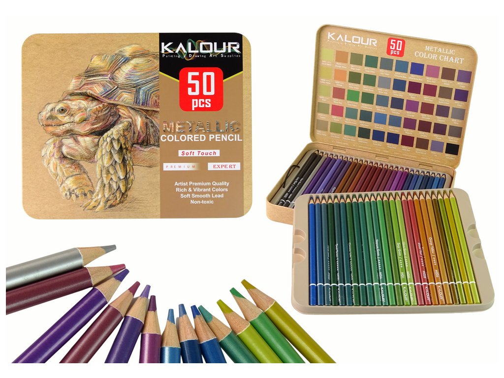 Metalické pastelky sú kúzelnou sadou, ktorá vám umožní objavovať nespočet farebných odtieňov a vytvárať jedinečné umelecké diela. Sada obsahuje až 50 metalických pasteliek, z ktorých každá je presne označená názvom farby, číslom a indikátorom svetlostálosti.