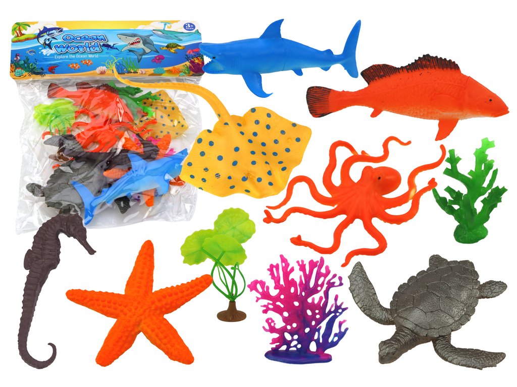 Sada figúrok morských zvieratiek je skutočným dobrodružstvom pre malých objaviteľov! Súčasťou balenia je 7 starostlivo vytvorených figúrok rôznych zvierat, ako je korytnačka, žralok, chobotnice a mnoho ďalších. Každá figúrka vyniká bohatými detailmi, vďaka čomu vyzerajú ako živé miniatúry morských tvorov.