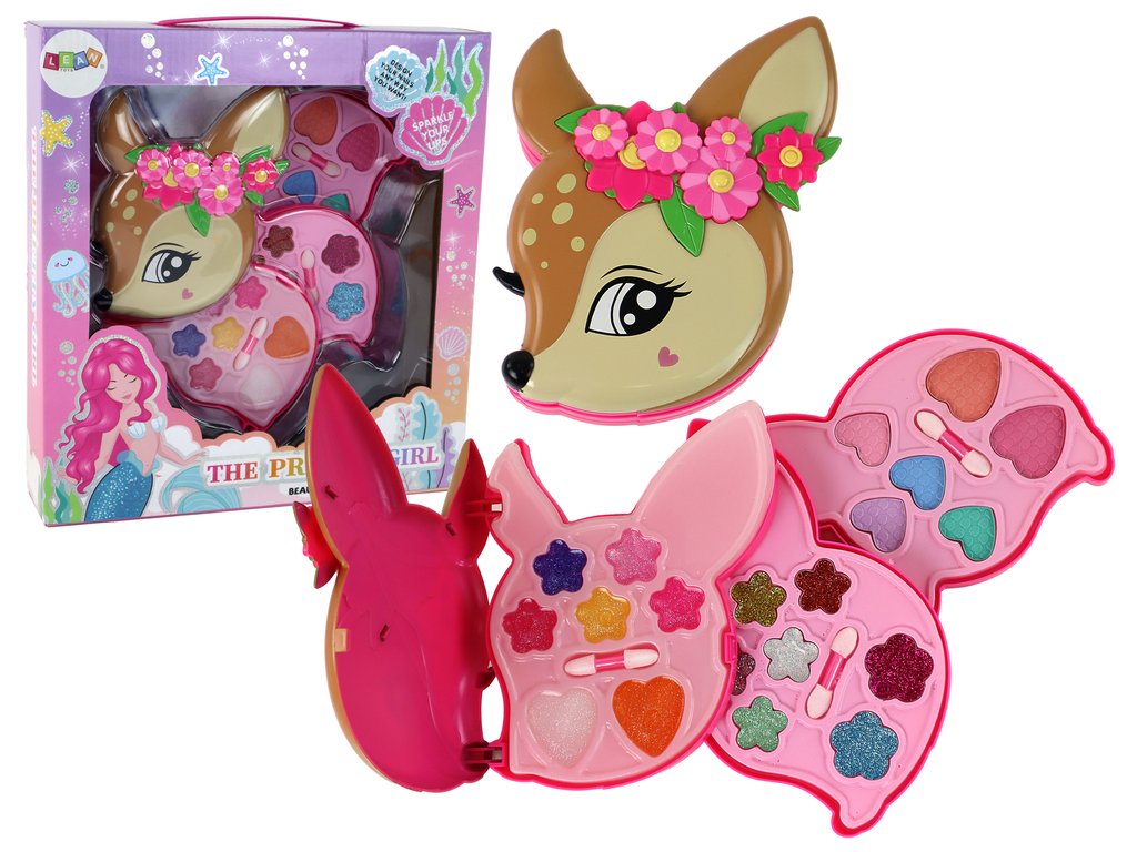 Dajte svojmu dieťaťu možnosť objaviť fascinujúci svet líčenia kreatívnym a bezpečným spôsobom vďaka tejto roztomilej sade tieňov na líčenie v tvare hlavy srnky.