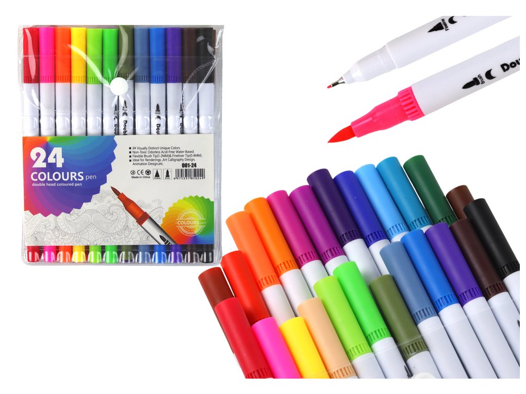 Súprava obojstranných fixiek 24 kusov rôznofarebné v organizéri
